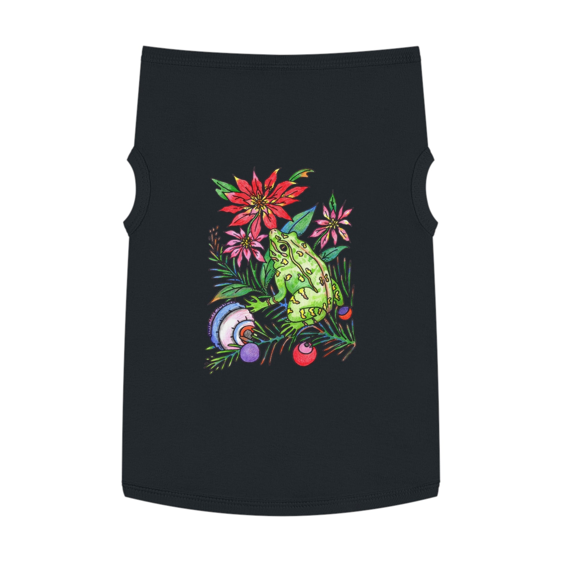 Slip a little wild charm onto your pup with this lightweight pet tank, featuring a vibrant watercolor-style frog nestled among poinsettias and festive baubles. Pair with matching human hoodie (sold separately).